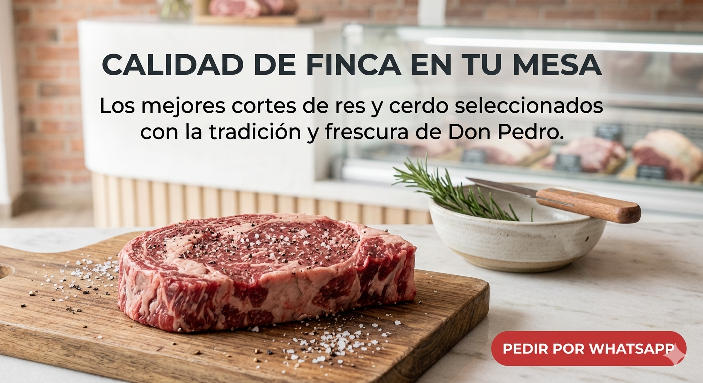 En Finca Don Pedro, eliminamos los intermediarios para garantizarte cortes de res y cerdo con una frescura inigualable. Criamos y seleccionamos cada pieza bajo estrictos controles de calidad, asegurando que el sabor del campo llegue intacto a tu hogar en Barranquilla